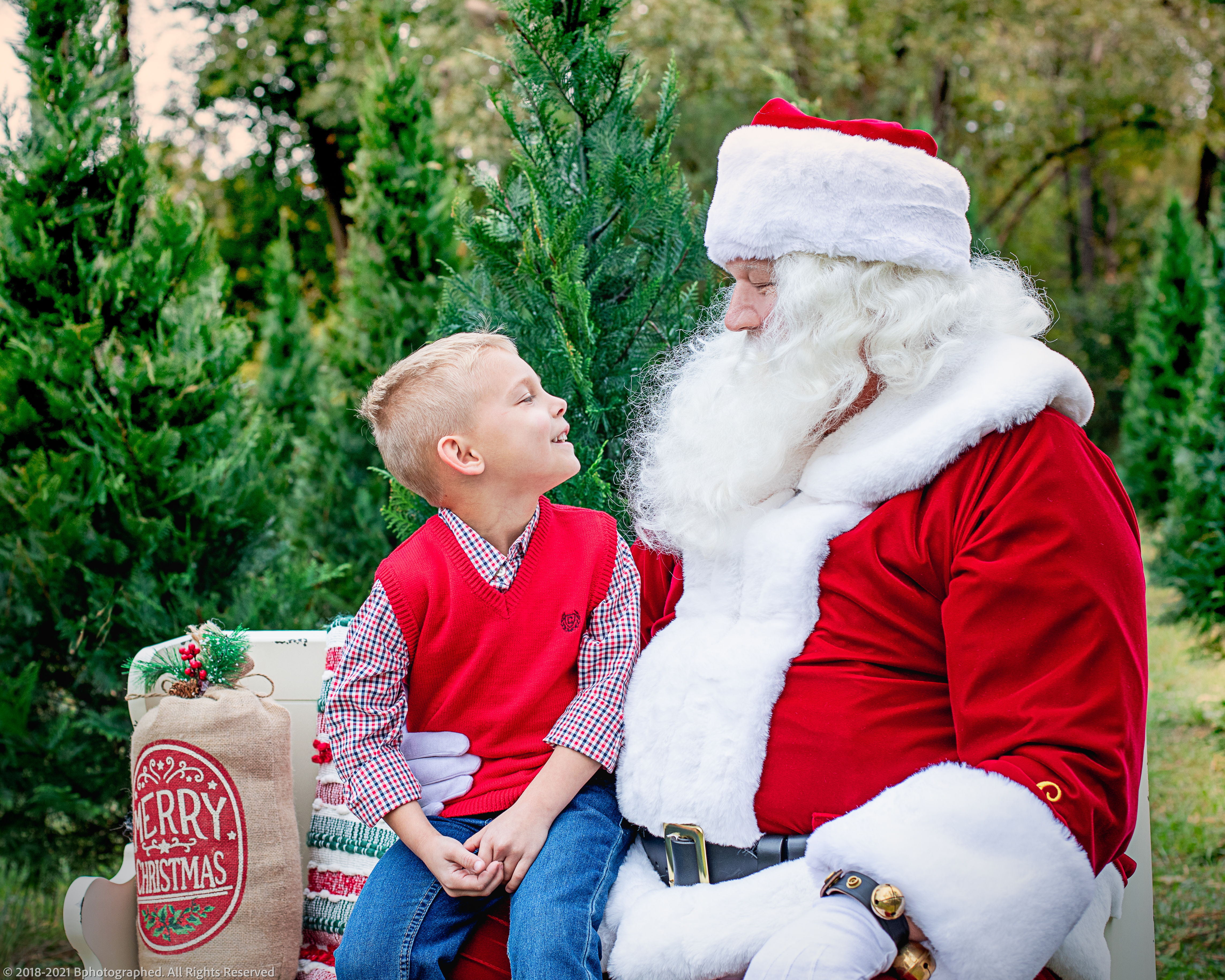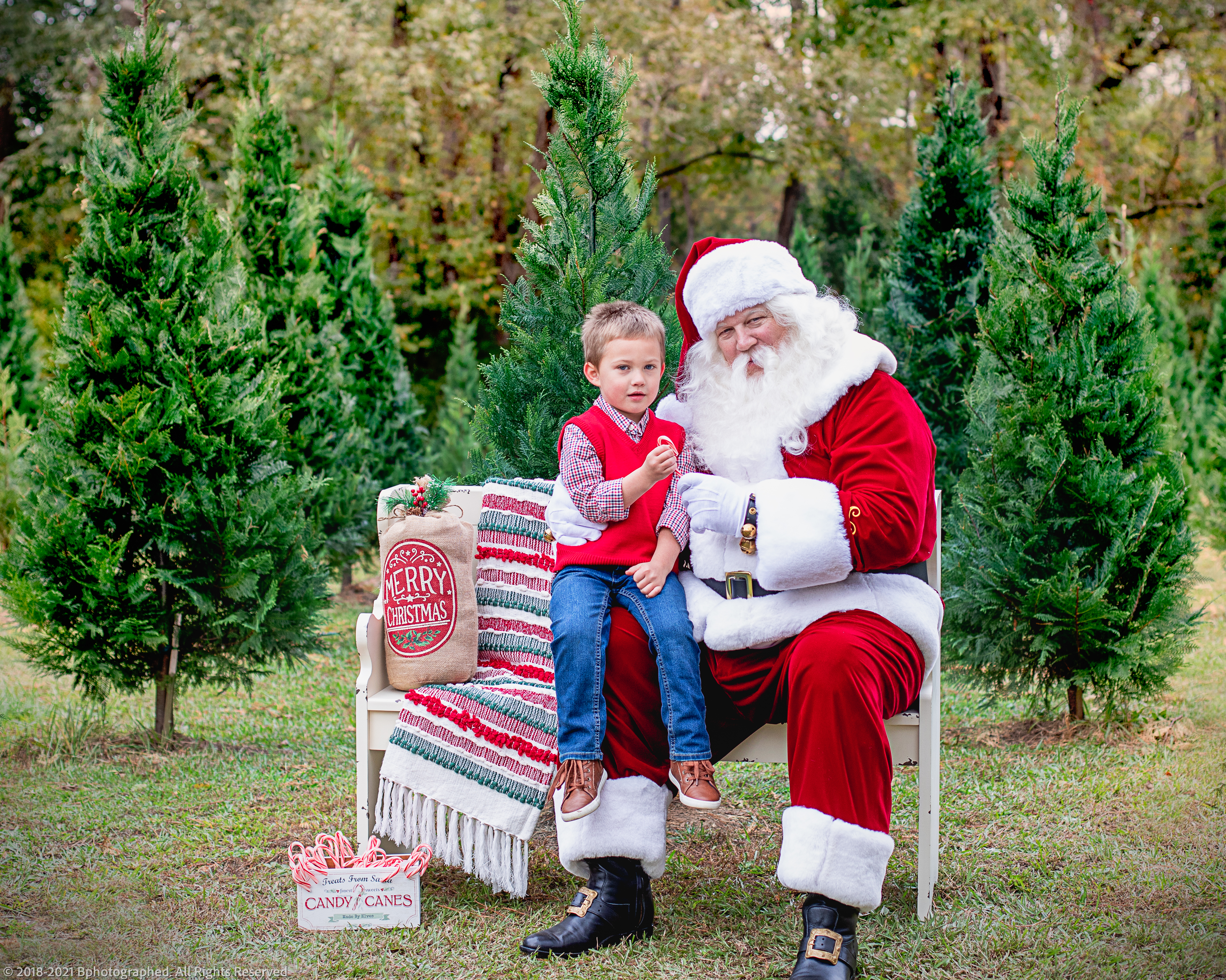 It was a beautiful day at the tree farm with the Branham family. Gary and Bentley enjoyed running throught the trees and meeting Santa! Cute as a button!