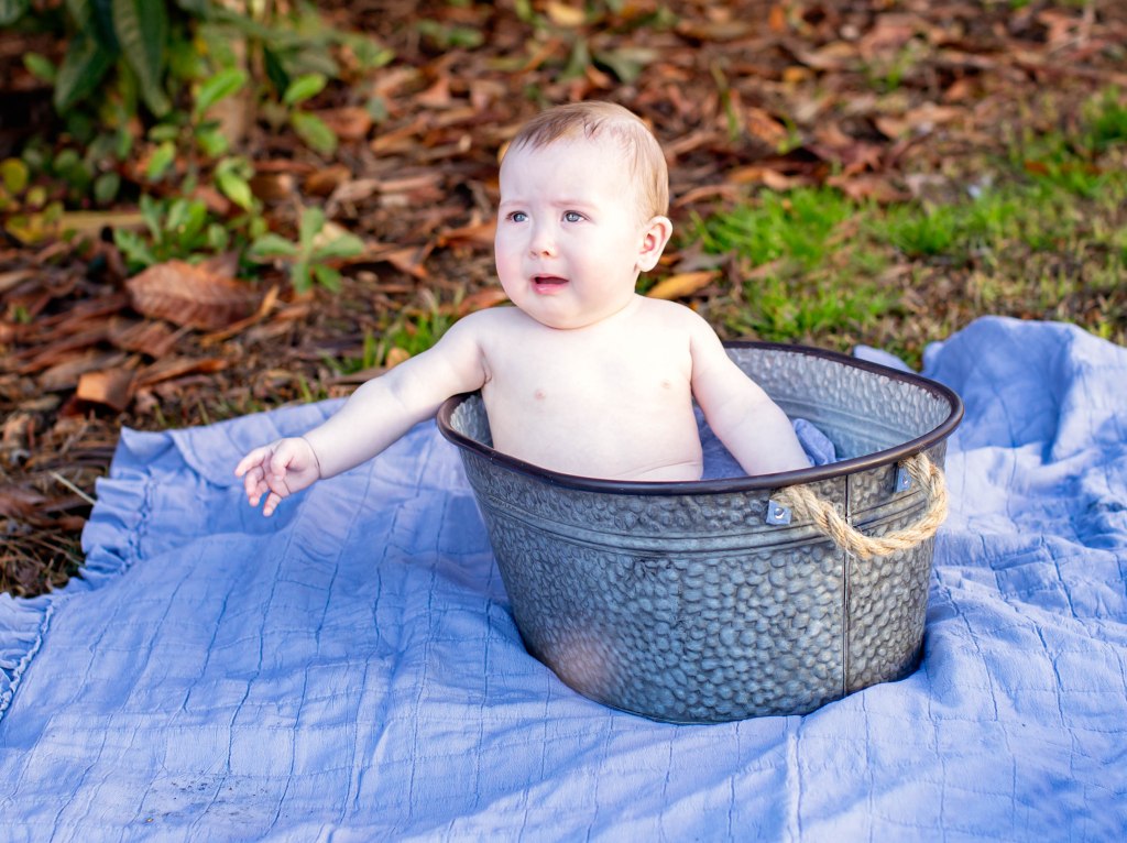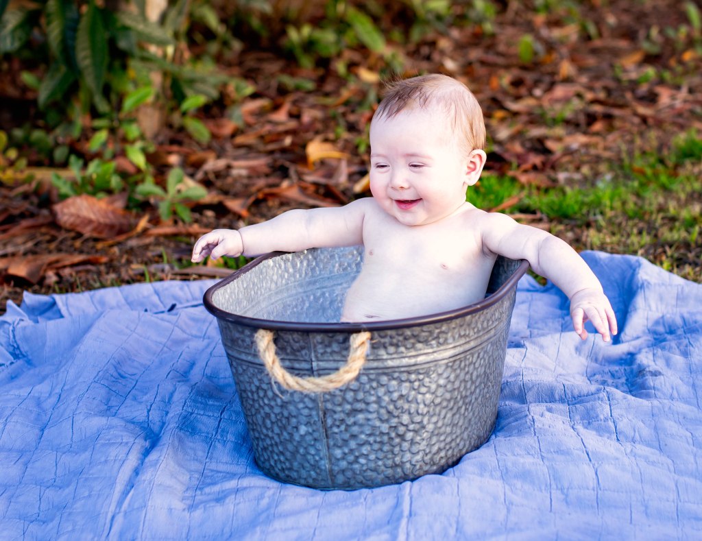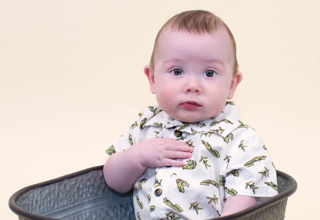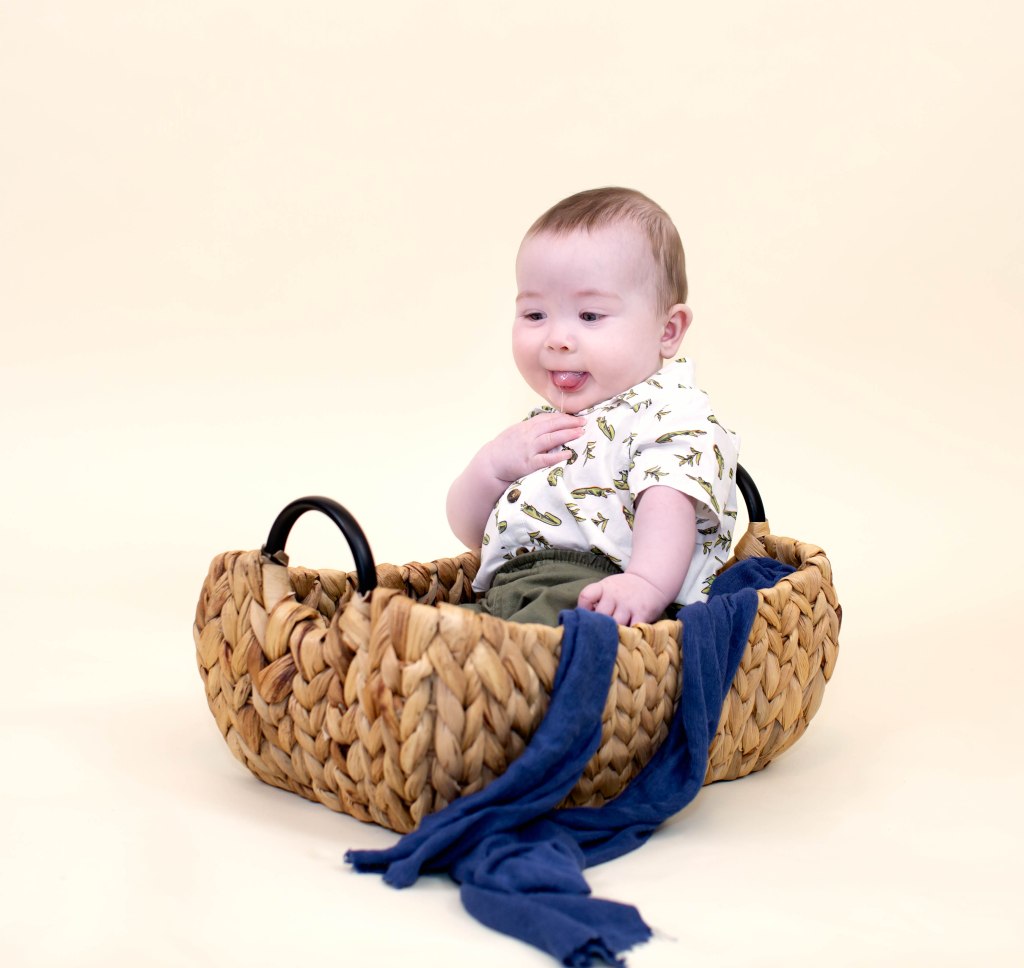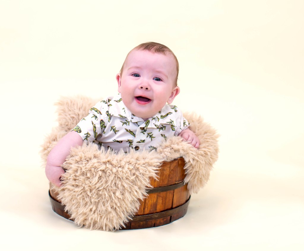 Well….I won’t tell how many times it took to get a few pictures of Weston for his six month photoshoot. He was not having it!!!. He did not like any of the buckets because he is not sitting up completely by himself yet. Eventually I was able to get a few to mark his 1/2 birthday! We love you little man!